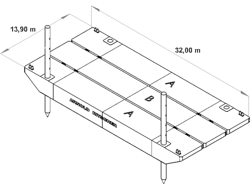 - mit zwei „Seekoppelpontons PN 906 A, B oder C oder PN 909 A, B, C) zu ca. 32 x ca.22,50 x 2,80m