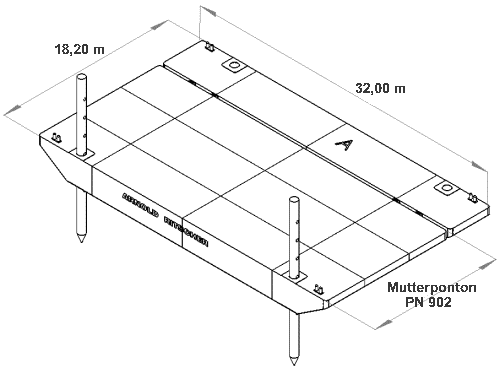 - mit einem „Seekoppelponton PN 906 A, B oder C oder PN 909 A, B, C) zu ca. 32 x ca.18,20 x 2,80m